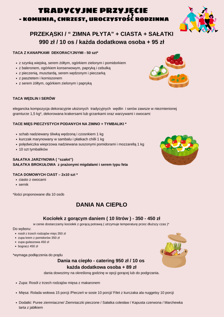 Menu proponujemy na uroczystości typu komunia, chrzest, uroczystość rodzinna.